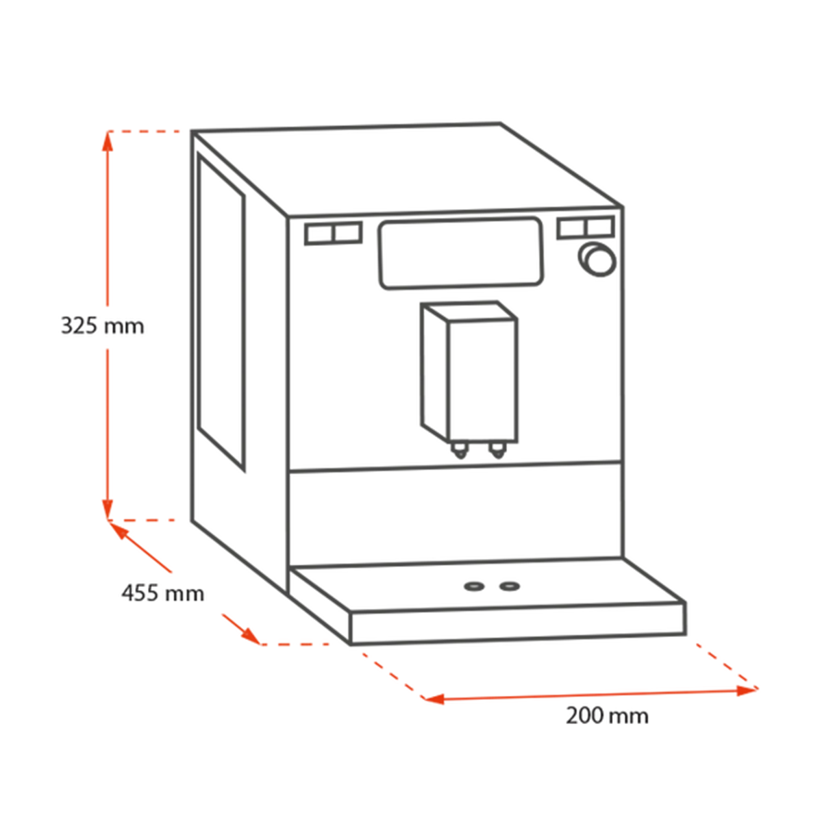 • Dimensions (H x W x D): 325 mm x 200 mm x 455 mm