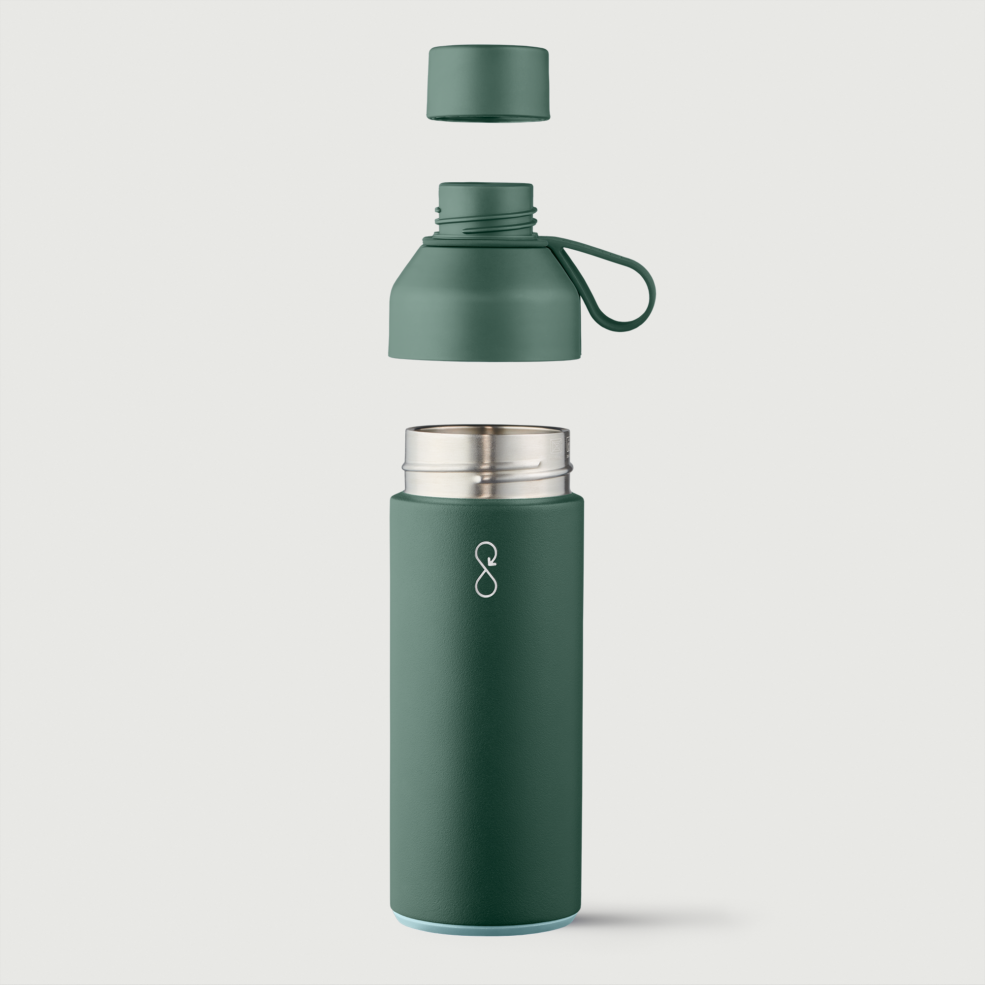 The award-winning Ocean Bottle inย Forest Green is designed to come along with you at home and beyond. It keeps your cold drinks cold and your hot drinks hot. Ice, soup, coffee, and smoothies are all good, thanks to its double lid that lets you sip, fill, pour and clean with joy.