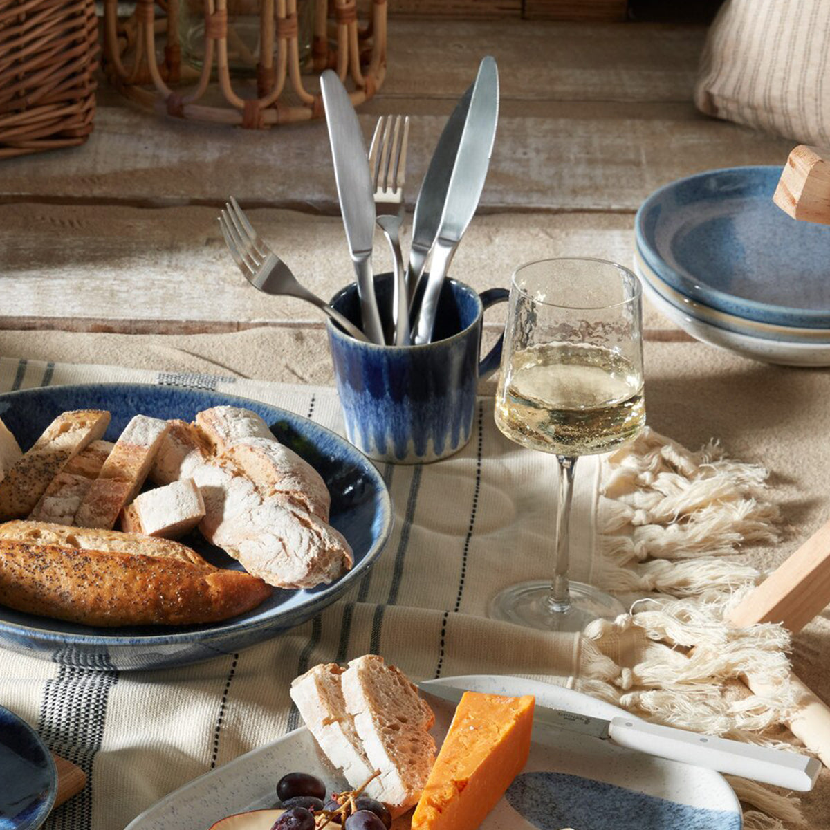Enjoy your favourite brew in style with the Denby Studio Blue Accent Large Mug. Handcrafted with a unique ridge effect and vibrant blue glaze, this mug combines rustic character with contemporary practicality. Perfectly sized to sit beneath a coffee machine and designed with durability in mind, it's ideal for everyday use—from your morning cuppa to an evening hot chocolate.