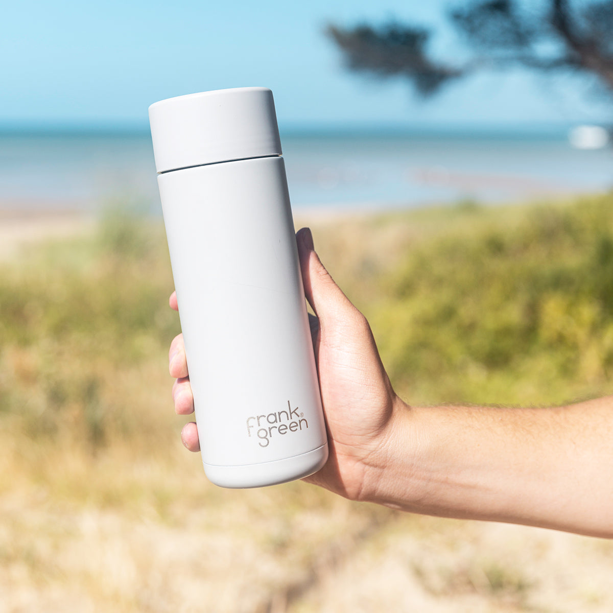 Revel in the pinnacle of reusable cup performance with the Frank Green 16oz/475ml Ceramic Reusable Cup – Cloud White. This elegantly designed cup keeps your drink hot or cold for hours thanks to triple-wall vacuum insulation, while the ceramic inner lining ensures pure, untainted flavour with every sip. Featuring a secure Push Button Lid for one-handed use and spill-free transport, it's the perfect companion for busy days, commutes, or casual sipping on the move. Sleek, sustainable, and made to last—this is a cup you’ll reach for every day.