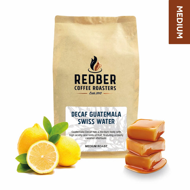 Guatemala Swiss Water Decaf Medium Roast offers a lighter, brighter take on decaffeinated coffee — smooth, naturally sweet, and 100% free from caffeine. Made with high-grown Arabica beans from Guatemala, this roast highlights the coffee’s fruitier and more delicate notes. Expect flavours of dark caramel, summer fruits, and a hint of citrus, with a lighter body and a crisp, clean finish.