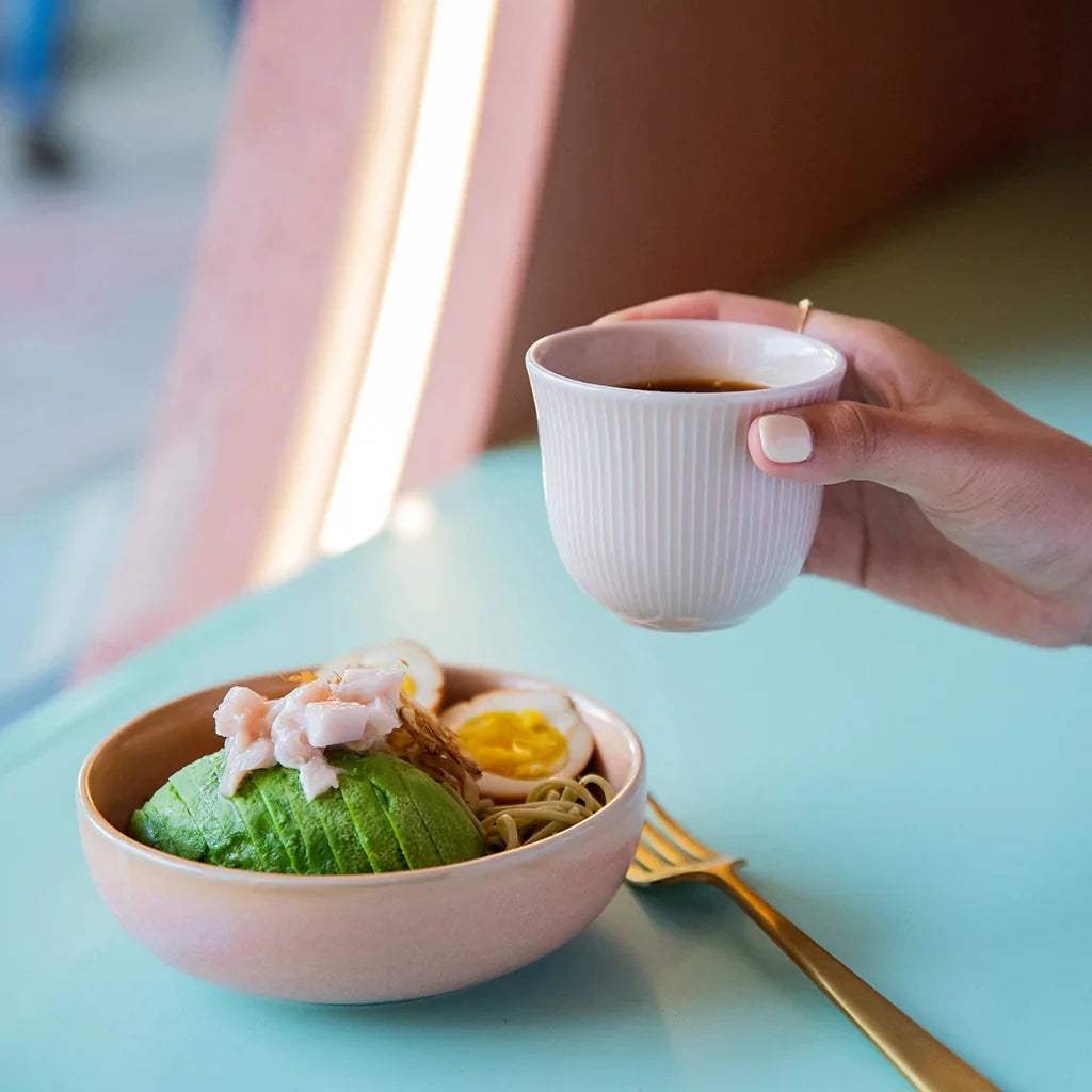 Delicate, modern, and beautifully tactile – the Loveramics Brewers 250ml Embossed Cappuccino / Drip Coffee Tasting Cup in Dusty Pink is the perfect blend of form and function. Inspired by the soft, muted tones of Hong Kong’s Rainbow Housing Estate, this pastel porcelain cup brings a gentle elegance to any coffee ritual. With a flared rim designed to maximise aroma and space for latte art, it’s ideal for cappuccino or filter coffee at home or in a professional setting.