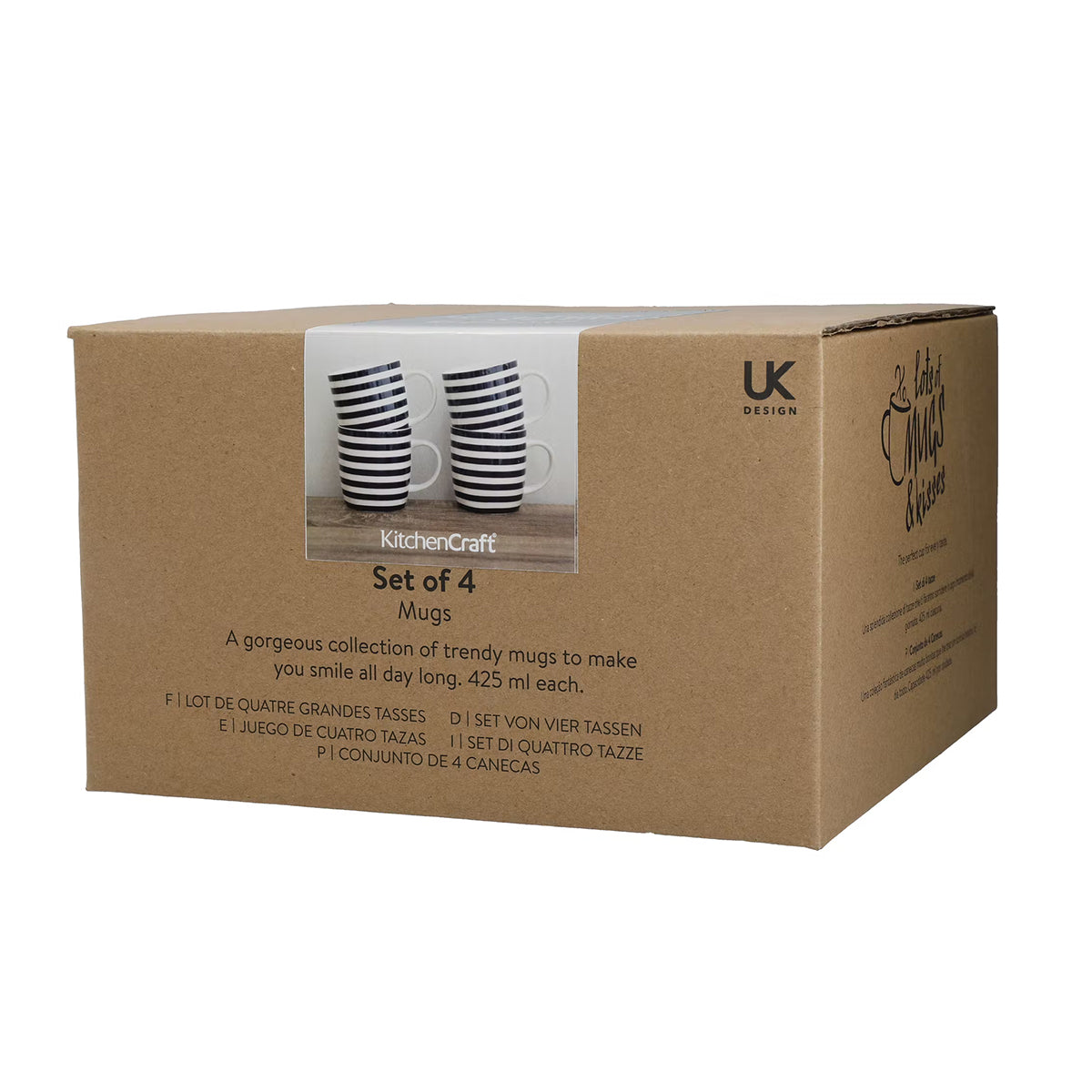 They're strong and durable, making them long lasting over years of repeated use. They come gift boxed. The mugs are also available in KitchenCraft'sย Grey Floral / Polka Dot design.