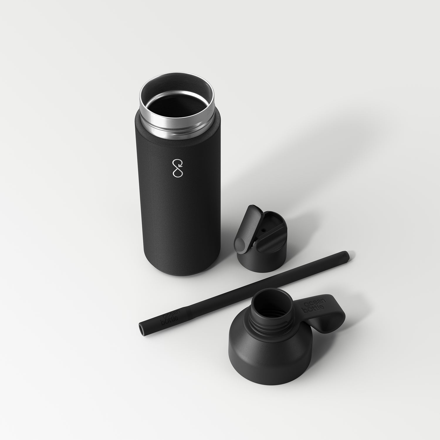 Introducing the new Ocean Bottle - Go Sports Bottle 500ml - Obsidian Black. Designed for an active lifestyle, this bottle includes a flip-lid with a silicone straw and a spill-control spout. Stay hydrated and stylish on the GO!