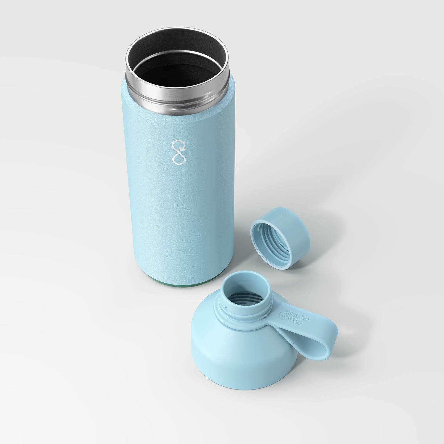 The award-winning Ocean Bottle in Sky Blue is designed to come along with you at home and beyond. It keeps your cold drinks cold and your hot drinks hot. Ice, soup, coffee, and smoothies are all good, thanks to its double lid that lets you sip, fill, pour and clean with joy.