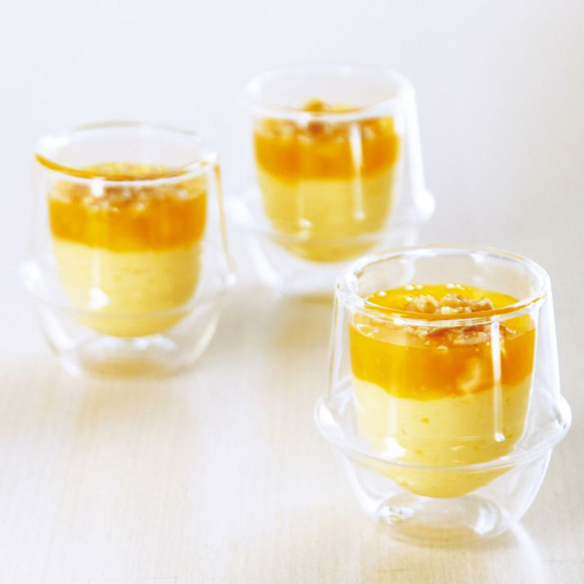 Kinto Kronos Double Wall Coffee Cup 250ml are effective and stylish. The inner wall is at an ideal angle for drinking, while the insulated outer wall both maintains the temperature of drinks for longer, whether hot or cold, and prevents condensation from forming, so tables do not get wet. The ring around the exterior supports the users' fingers while drinking. These cups double up as unique dessert and appetiser servers.