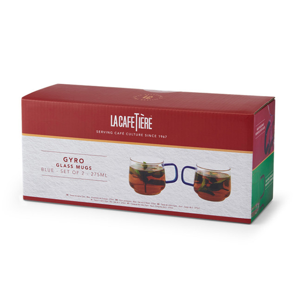 La Cafetiere Glass Mug, Set of 2, 275ml - Blue Glass Handle is backordered and will ship as soon as it is back in stock.